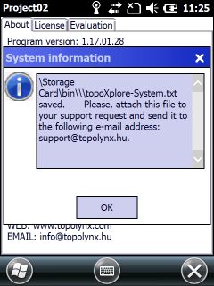 Displayed message box about the saved topoXploreSystem.txt